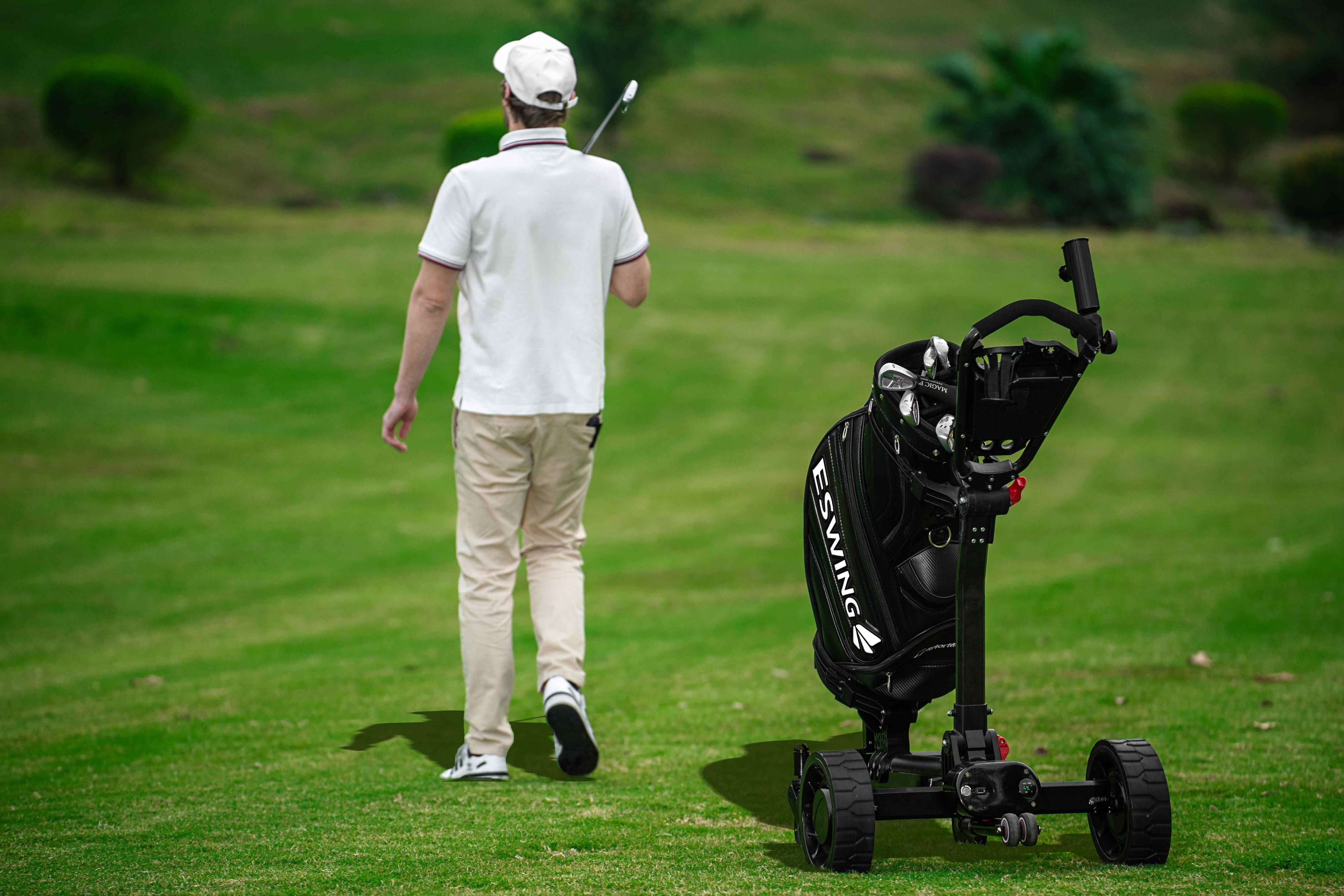 A golf cart that uses radar positioning to follow you automatically.